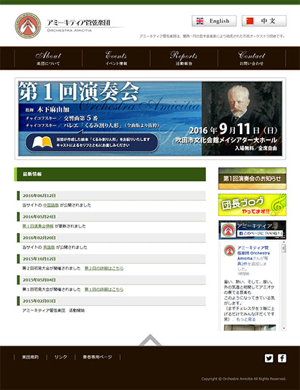 関西のアマチュアオーケストラの公式WEBサイトです。大学時代に参加していた交響楽団でのご縁から制作を担当しました。