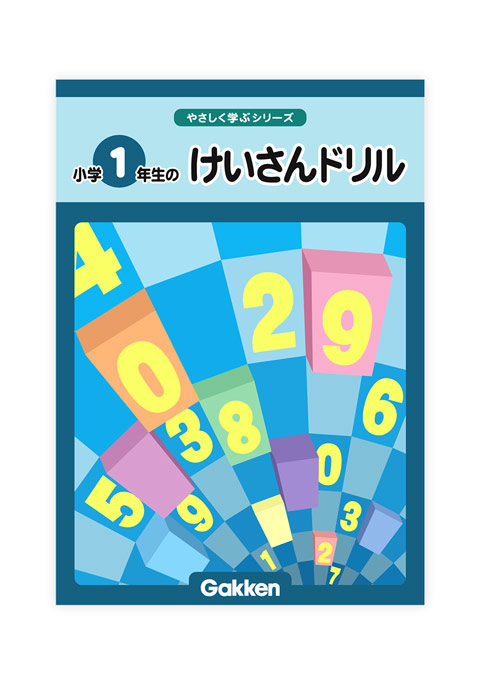 単色塗りの図形のみを使用するという条件の下で制作した、学習ドリル表紙のデザイン課題です。