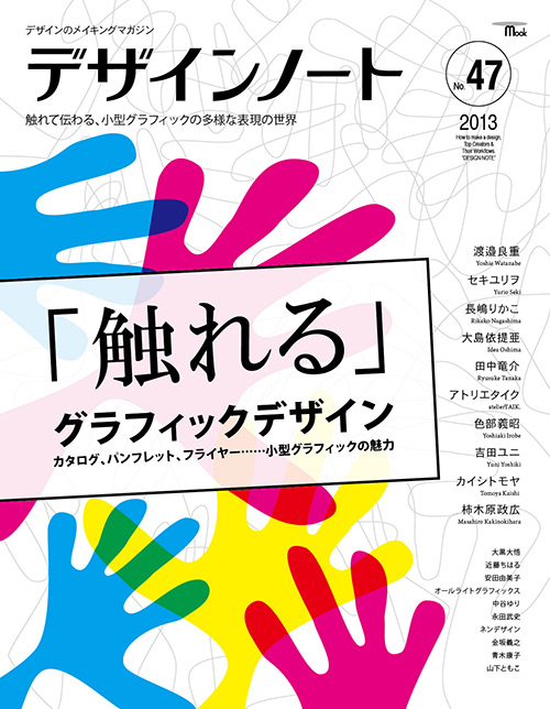 シンプルな手形と色料の3原色で大胆に構成したデザイン誌「デザインノート」のリデザイン課題です。