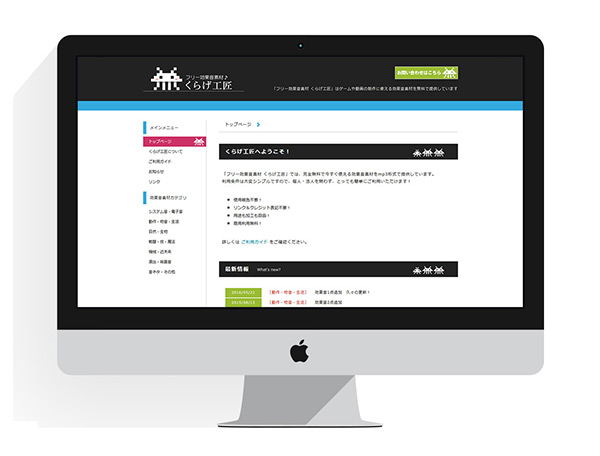 2012年から趣味で運営している効果音素材の配布サイトです。 覚えたてのCSSと当時はまっていたシンセサイザー弄りを同時に活かす形で、悪戦苦闘しながら制作しました。