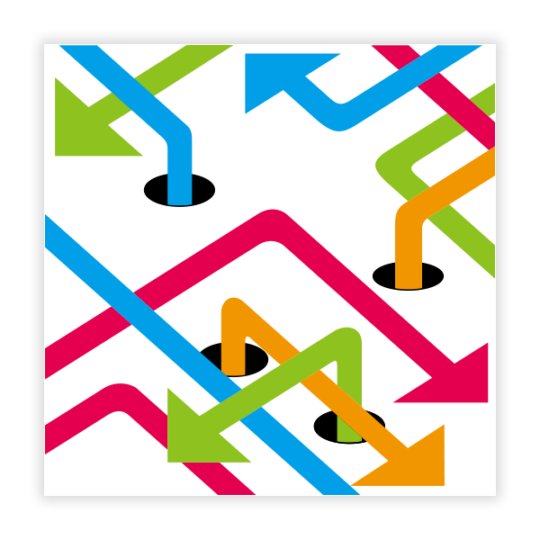 以下の画像は、A3ケント紙に制作されたものをスキャンし、Illustrator で形を整えて彩色したものです。