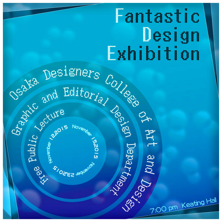 教本中には8つのレイアウトシステムが紹介されており、そのうち4つのシステムを選んでグラフィックを制作しました。 あくまで文字の配置手法を学ぶ課題なので、可読性や情報の整理などは考慮せずに制作されています。